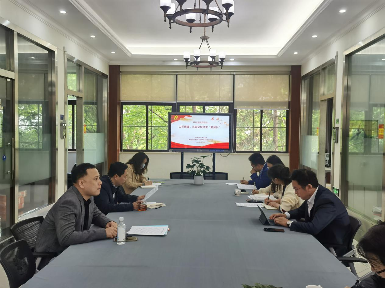 2023年4月27日上午,对外联络办公室部分党员参加了本年度4月主题党日活动。活动主题是:以学铸魂,当好全校师生“勤务兵”。党日活动由支部书记唐军同志主持。