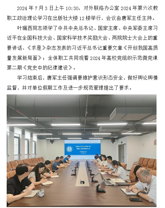 2024年第六次教职工政治理论学习