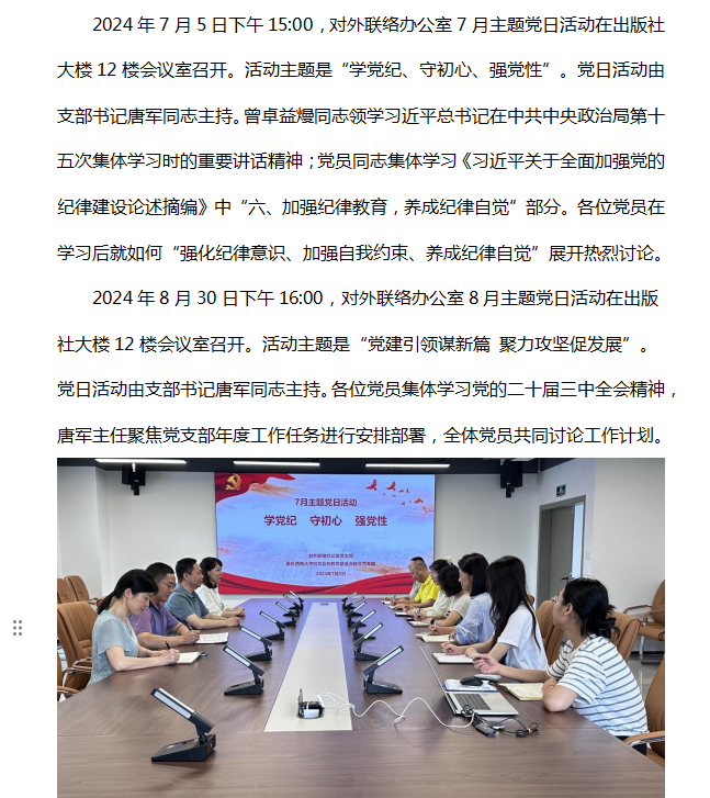 对外联络办公室7月、8月主题党日活动