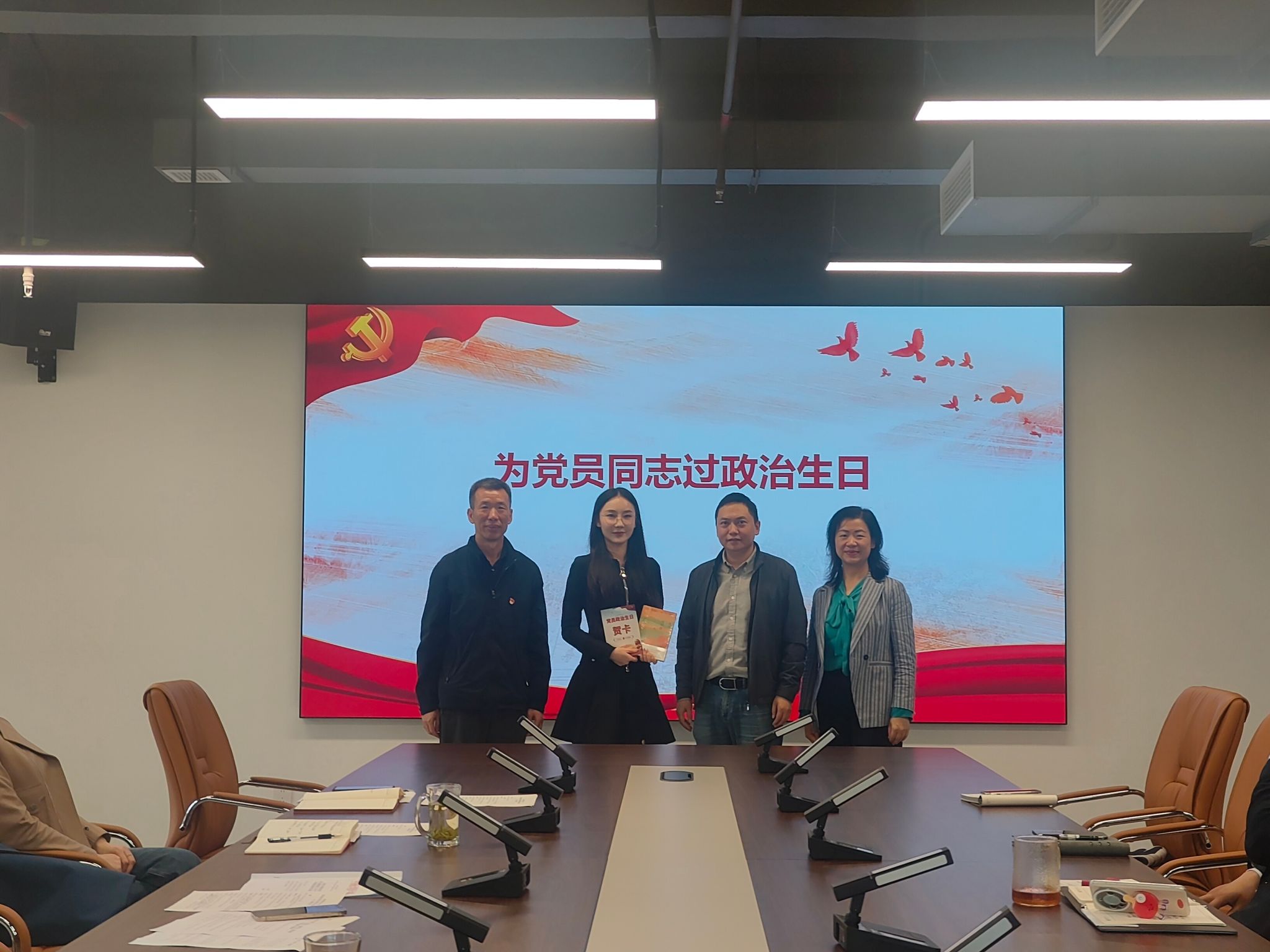 理论学习后,各位党员就本次党日活动主题内容展开讨论并开展业务培训。喻尚其、周敏及唐军为过政治生日的党员同志送上祝福。