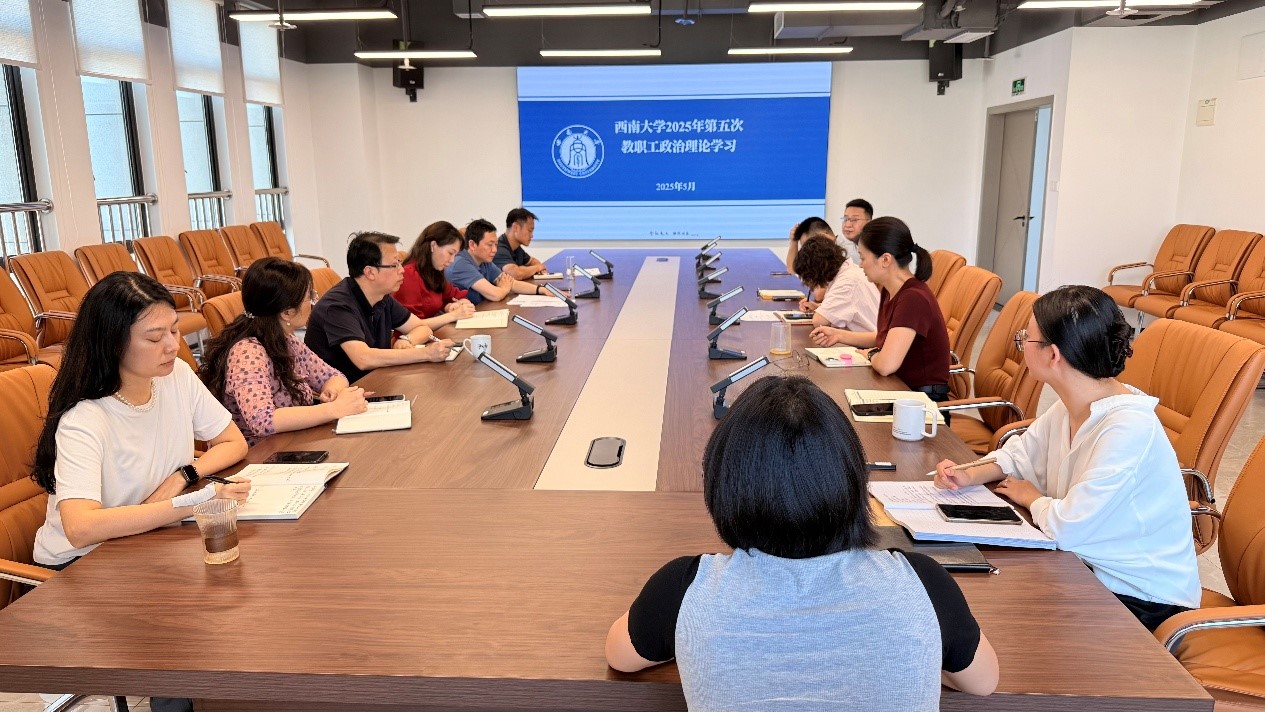 2025年5月9日下午,对外联络办公室(重庆betway西汉姆联教育基金会和校友会)2025年第五次教职工政治理论学习在出版社大楼12楼举行,会议由唐军主任主持。