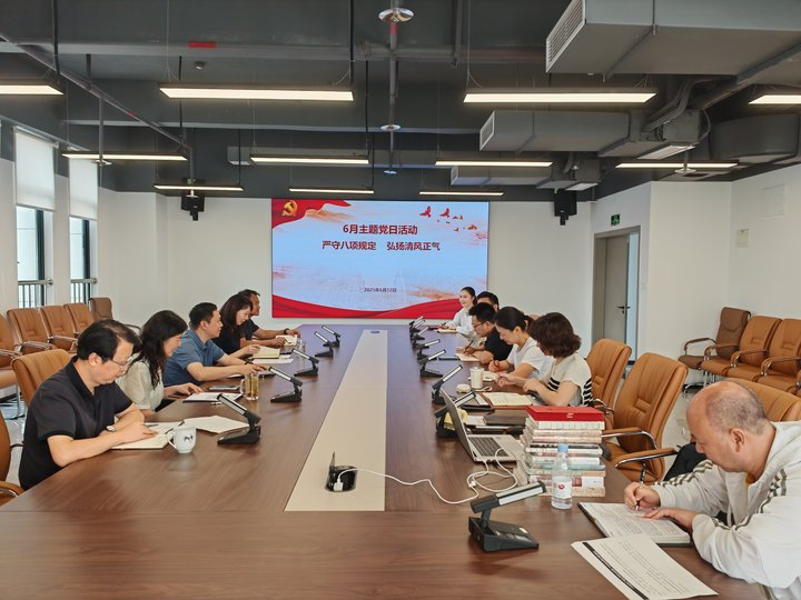 2025年6月12日上午,支部6月主题党日活动在对外联络办公室会议室召开。党日活动主题是“严守八项规定,弘扬清风正气”,活动由支部书记唐军同志主持。