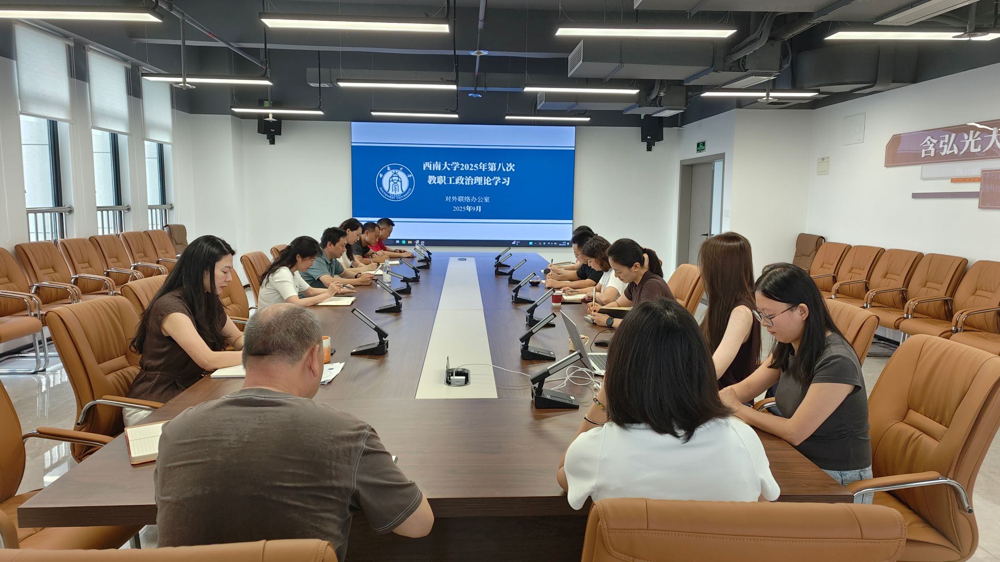 2025年9月3日上午,对外联络办公室(重庆betway西汉姆联教育基金会和校友会秘书处)在出版社大楼12楼会议室组织召开了2025年第八次教职工政治理论学习会议。本次学习会议由唐军主任主持,全体教职工参加。
