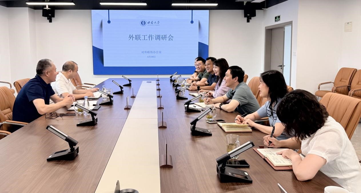 5月30日,党委常委、副校长葛信勇到对外联络办公室调研指导工作。党政办公室副主任、督查办公室主任曾庆洪陪同调研。对外联络办公室科级以上干部参加会议。