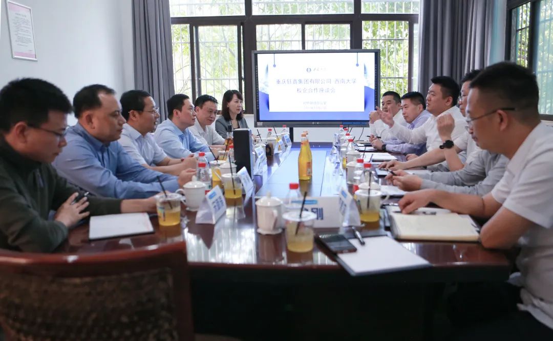2023年10月17日下午,学校理事单位、校友企业重庆钰鑫实业集团有限公司(以下简称“钰鑫集团”)总裁尹顺新携常务副总裁谢长勇、副总裁吴永阳、行政人力总监何蒲、党委书记张林、嘉威啤酒公司总经理李德均、饮料公司总经理曾刚等一行来校开展座谈交流,进一步深化落实双方合作事项。学校对外联络办公室主任唐军、国内合作处处长杨明厚、后勤集团副总经理唐永斌、对外联络办公室副主任高德香、刘涛等相关部门负责人参加座谈。