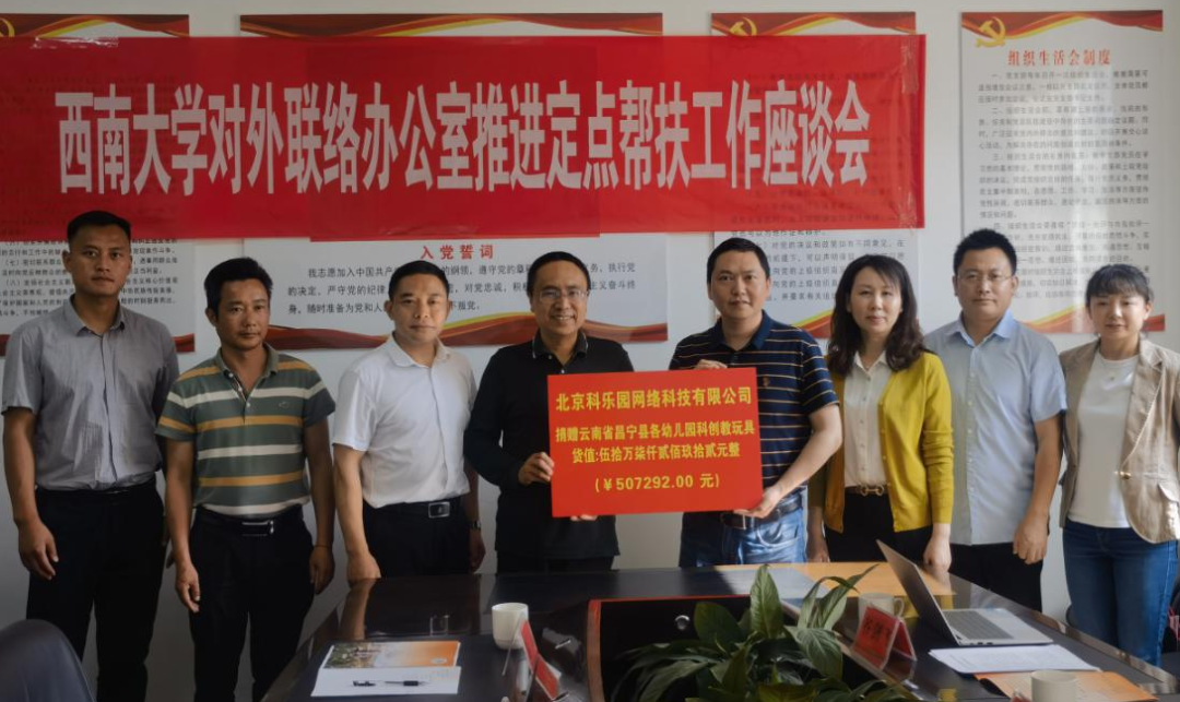 5月6日,前往昌宁看望、慰问学校挂职干部,参加推进定点帮扶工作座谈会,并代表校友企业北京科乐园网络科技有限公司向昌宁育才教育事业促进会捐赠价值50余万元的科创教玩具,助力昌宁县少儿科创教育事业发展。