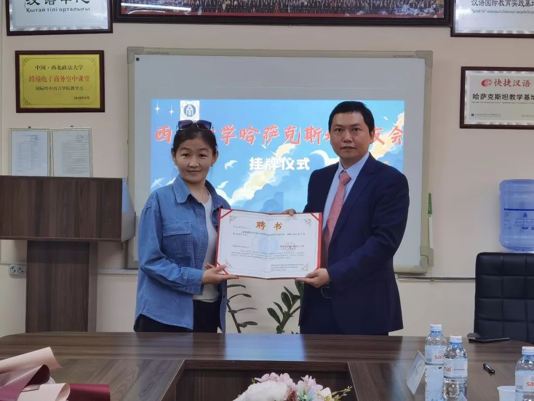 唐军为2012级教育学部沙吾列博士校友颁发校友会会长聘书、为2015级教育学部阿依江博士校友颁发秘书长聘书,聘请2014级音乐学院萨克校友担任副秘书长。国际哈中语言学院作为校友会驻地,学院校长塔勒哈特代表校友会接受betway西汉姆联哈萨克斯坦校友会铭牌。