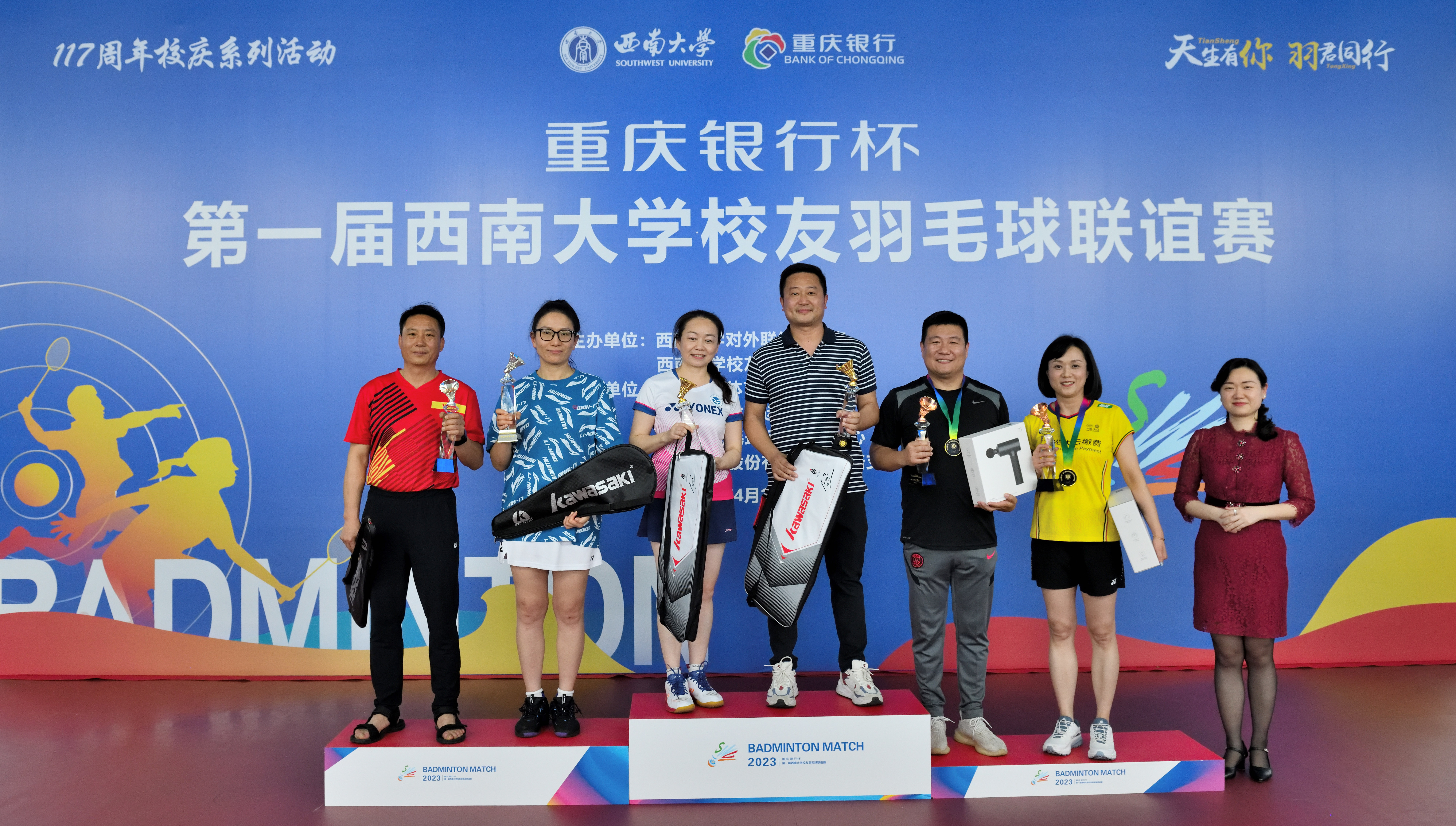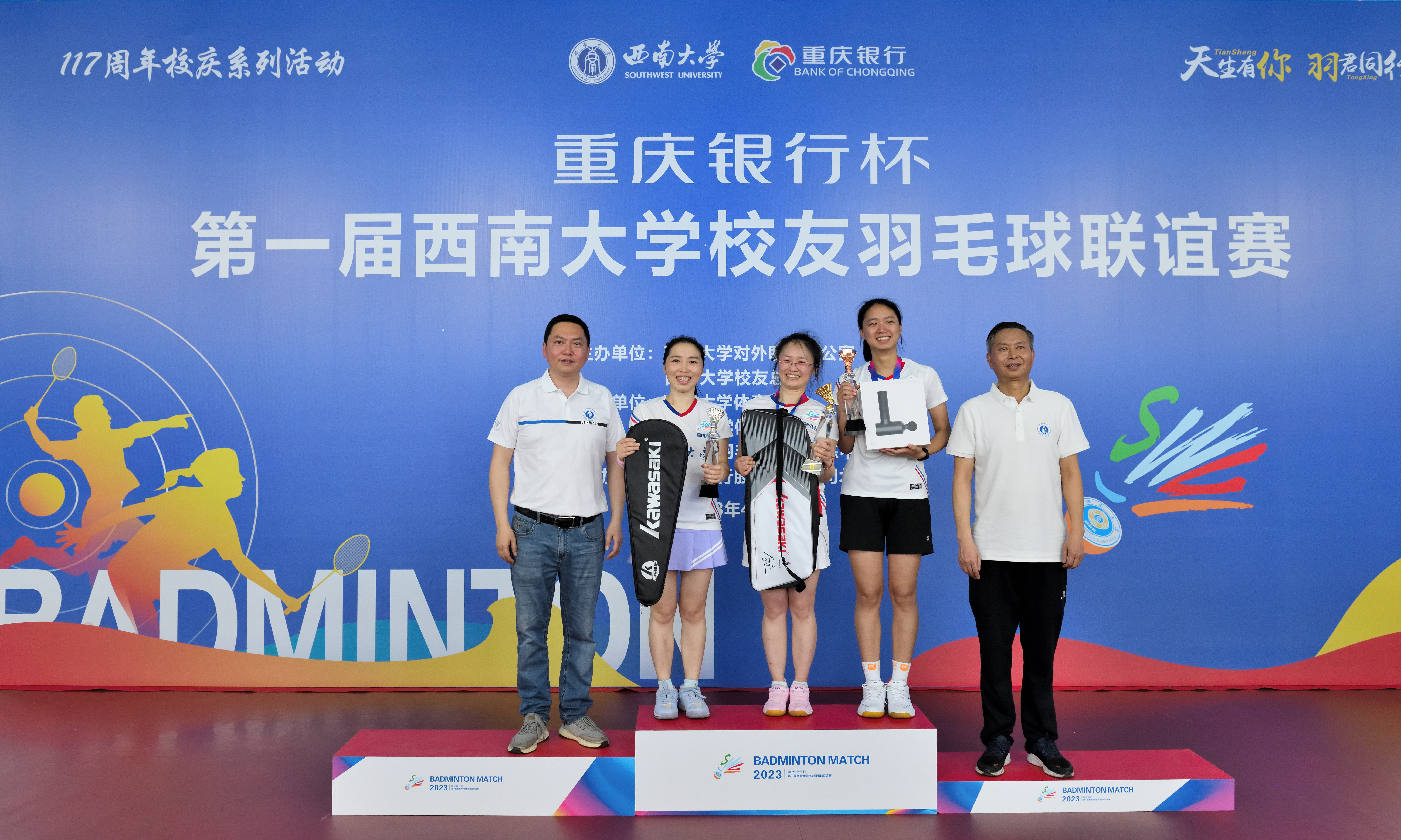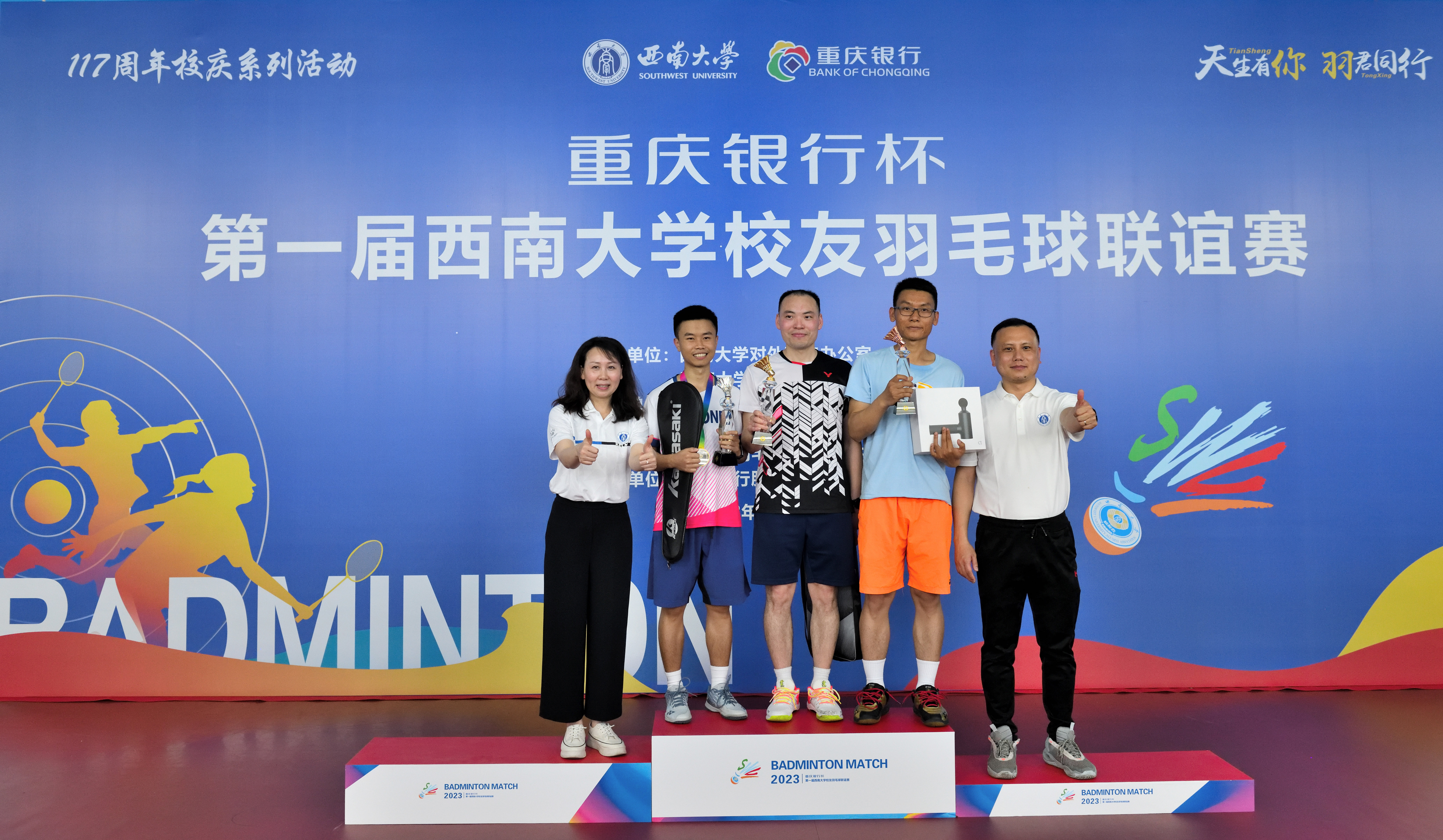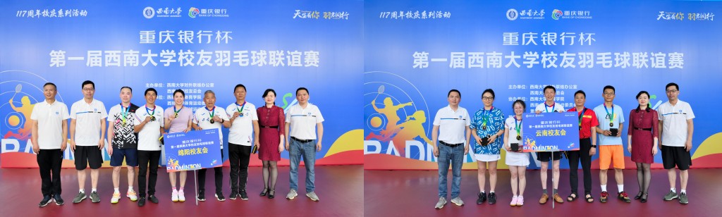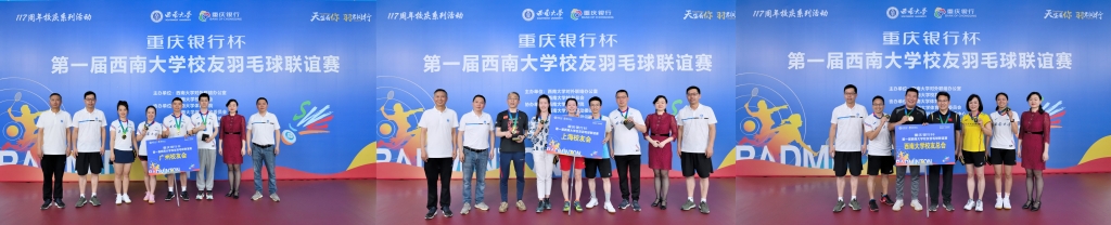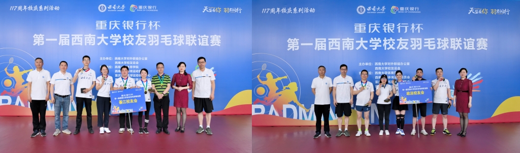 赛后,学校党委常委、副校长赵国华教授,重庆银行股份有限公司北碚支行副行长周密,对外联络办公室主任唐军、副主任高德香、副主任刘涛,体育委员会主任刘斌作为嘉宾分别为获奖队员和校友会颁奖。
