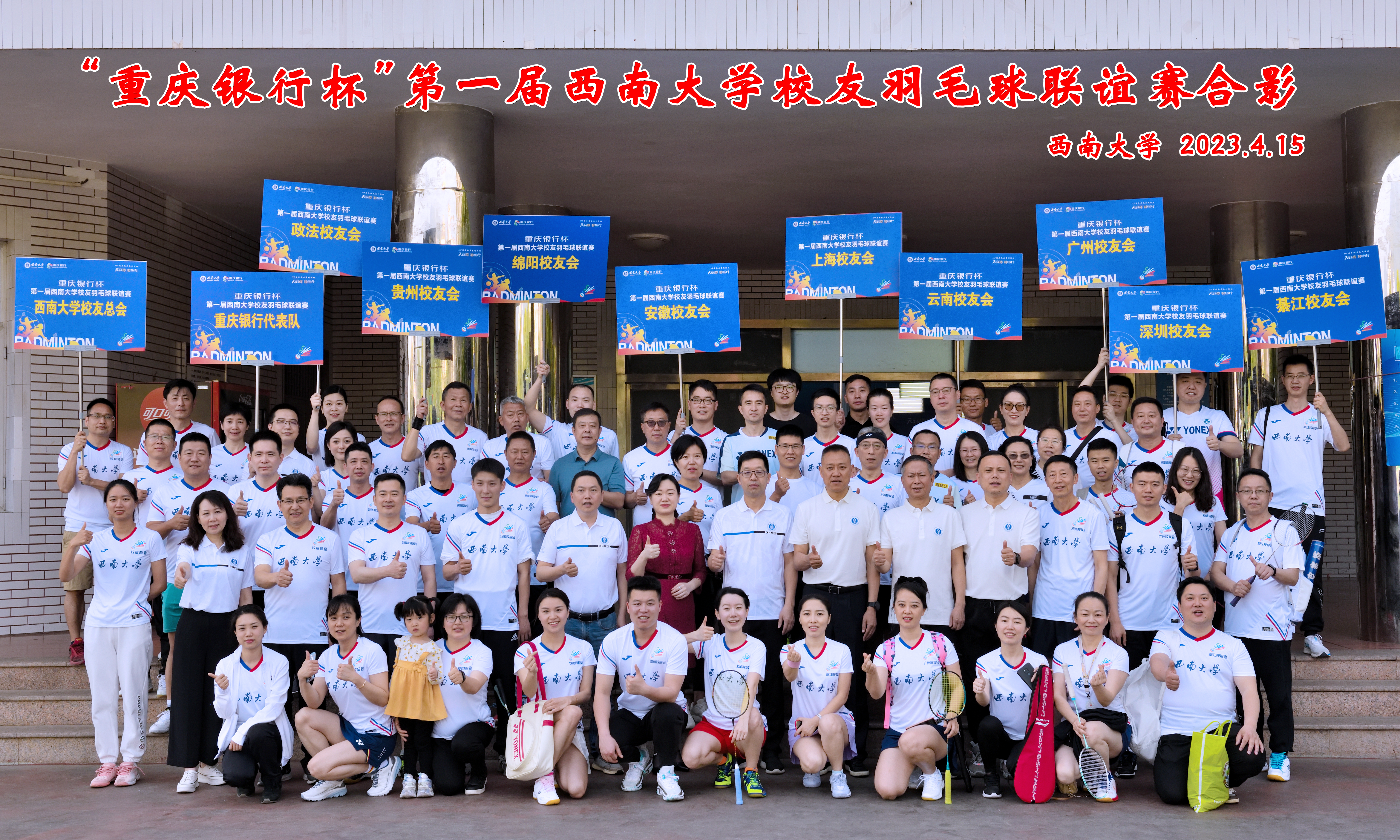 本次联谊赛由betway西汉姆联对外联络办公室、校友总会主办,betway西汉姆联体育学院、betway西汉姆联体育运动委员会、重庆市羽毛球运动训练中心承办,重庆银行股份有限公司北碚支行赞助。校友总会、贵州校友会、政法校友会、云南校友会、绵阳校友会、广州校友会、安徽校友会、綦江校友会、上海校友会、深圳校友会等10支代表队参加。