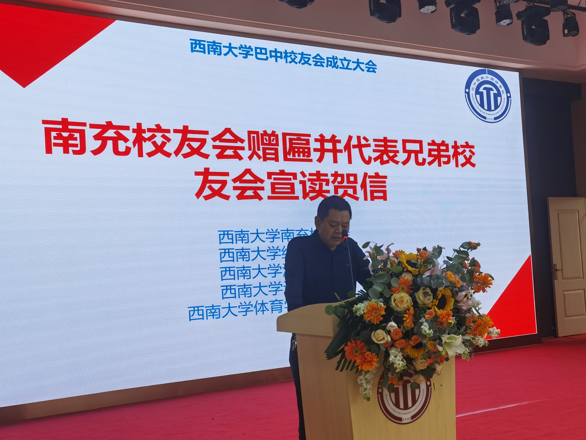 随后,四川校友会代表、经济管理学院1979级校友邓和会长致辞,南充校友会代表、工程技术学院1979级校友余勤会长致辞并赠送牌匾,均表达了对巴中校友会成立的祝贺和期望。