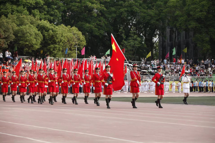 在庄严的升旗仪式后,安春元在致辞中表示,学校一直以来高度重视体育工作,形成了春季田径运动会暨体育文化节、秋季新生运动会暨中华传统体育项目展示、校园马拉松等品牌赛事,健全了师生广泛参与的体育比赛机制和新时代体育教育体系。希望全体运动员发扬“团结、友爱、奋进”的良好风格,弘扬“更高、更快、更强、更团结”的体育精神。