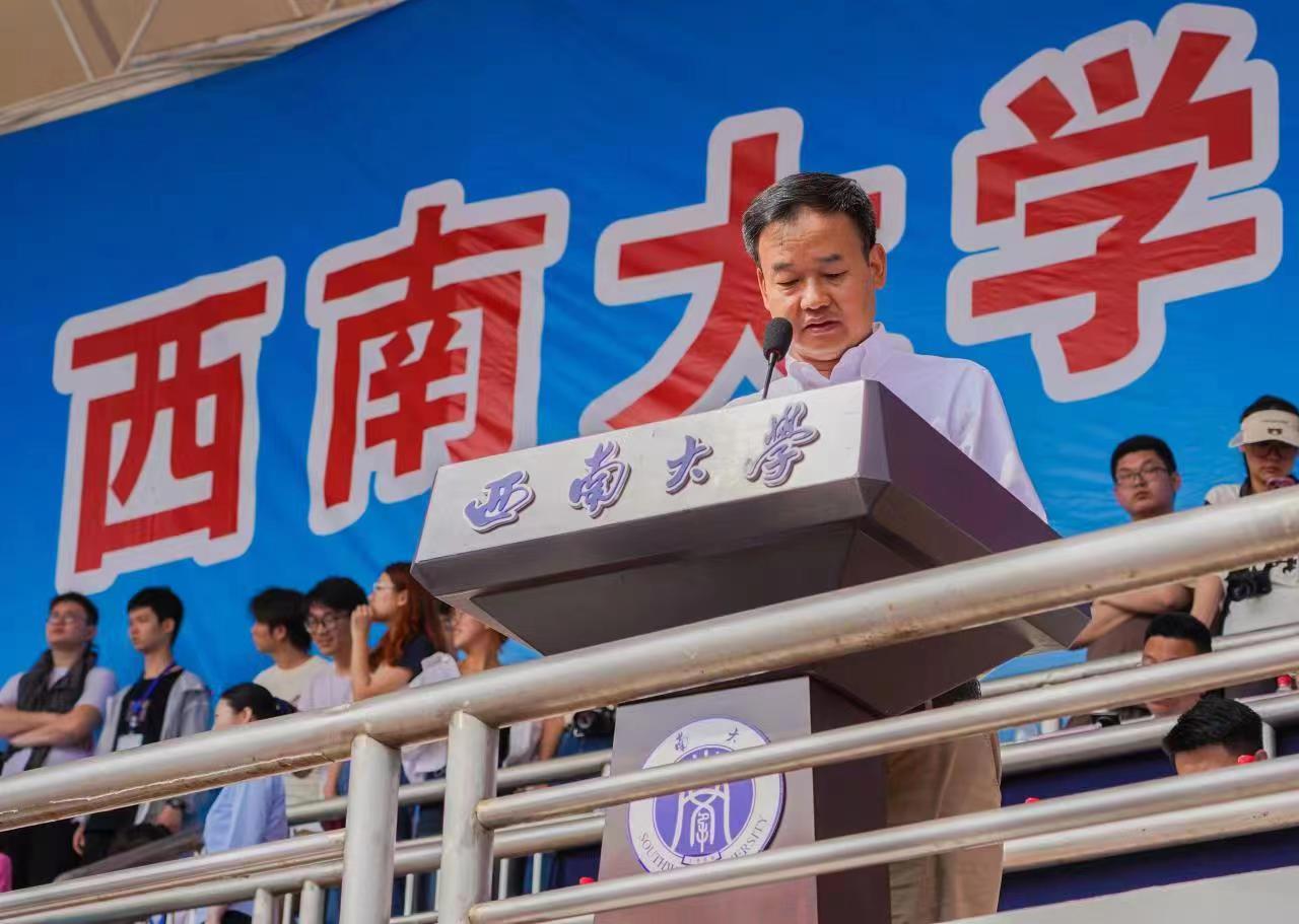 玉兰报春、万象更新。4月20日上午,学校第十七届春季田径运动会暨体育文化节开幕式于学校第二运动场举行。学校党委书记李旭锋、党委副书记安春元、潘洵,党委副书记、纪委书记夏玉峰、副校长陈时见、崔延强、王进军、王志坚、葛信勇,校友广东品胜电子股份有限公司董事长赵国成出席开幕式,各参赛单位负责人、校体委成员、运动员、裁判员、工作人员参加开幕式。