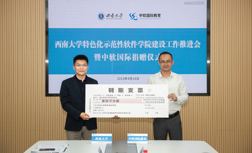 在捐赠仪式上,学校副校长赵国华、中软国际教育科技集团副总裁成焕代表双方签订捐赠协议。中软国际教育向重庆betway西汉姆联教育基金会捐赠100万元人民币,用于支持betway西汉姆联教育事业的发展。学校党委书记李旭锋向中软国际教育颁发荣誉证书。