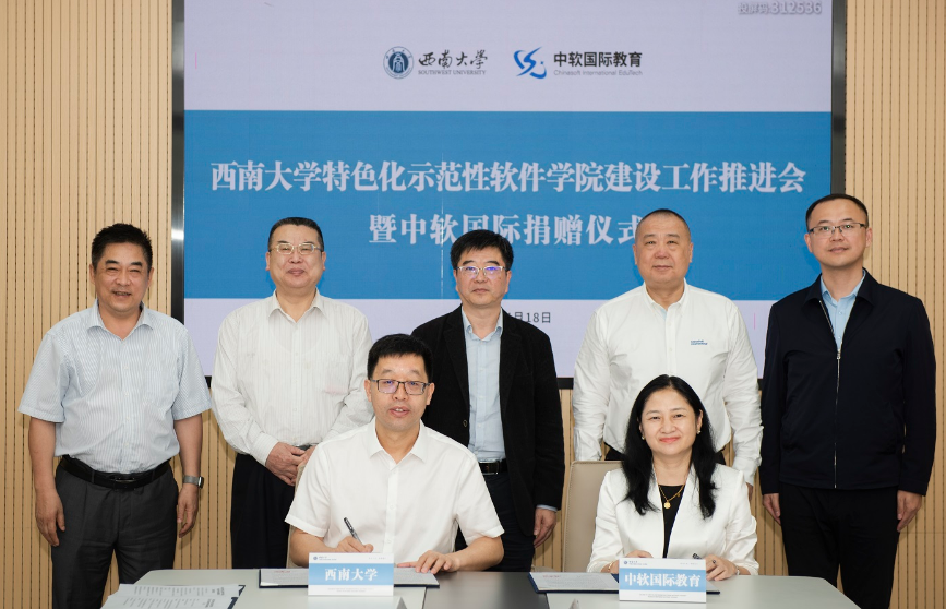 4月18日上午,学校举行特软学院建设工作推进会暨中软国际捐赠仪式。工业和信息化部人才交流中心教育培训处处长曲来军,国家示范性软件学院联盟理事长、教育部软件工程专业教指委副主任卢苇,重庆市经济和信息化委员会二级巡视员廖冰,中软国际党委书记、执行董事、高级副总裁唐振明,学校党委书记李旭锋、副校长赵国华,对外联络办公室主任唐军、对外联络办公室副主任刘涛等领导出席会议,中软国际和学校党政办、教务处、计算机与信息科学学院 软件学院等部门相关负责人参加会议。