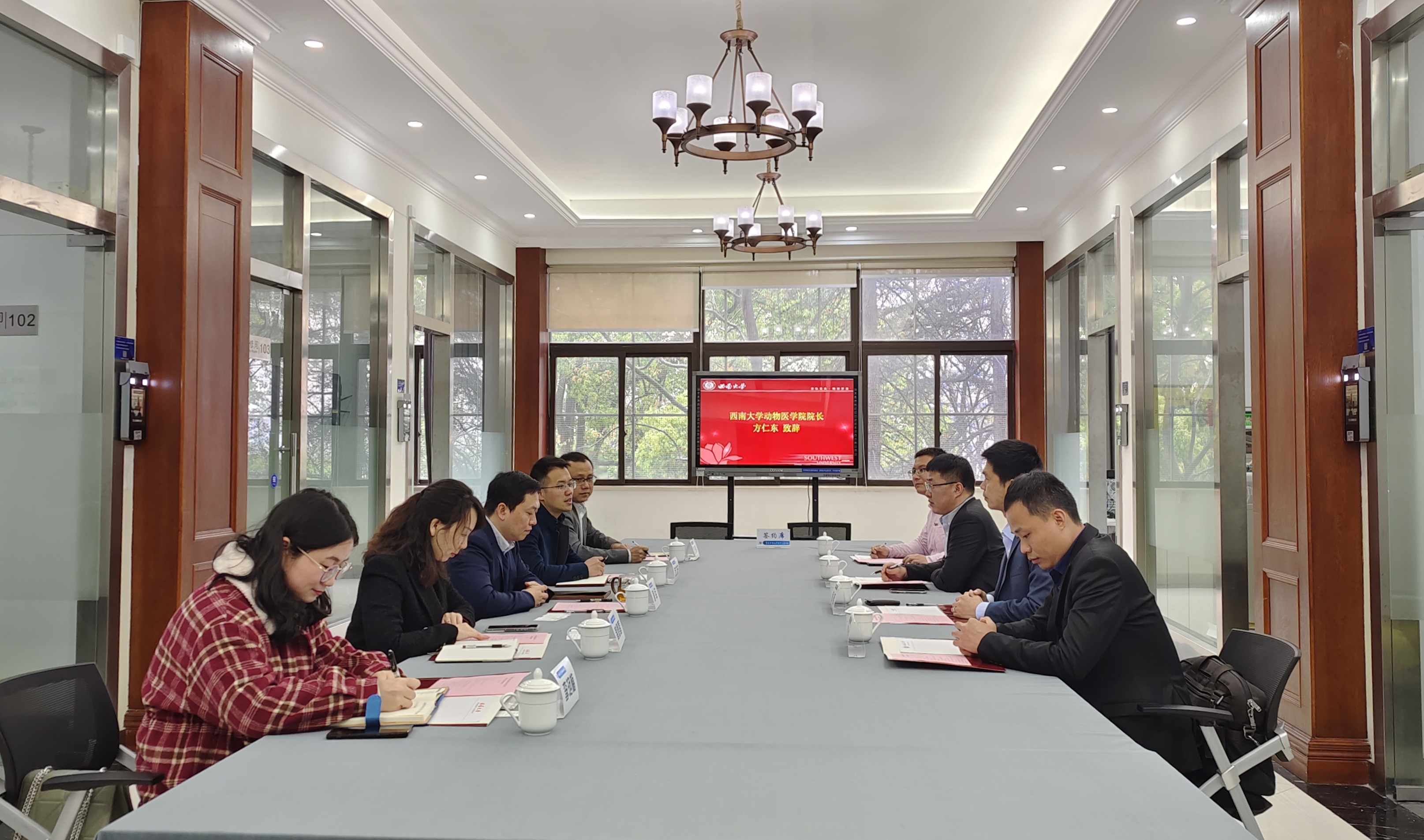 仪式上,方仁东首先对何辉一行的到访表达了热烈欢迎,对于企业的公益情怀、校友对母校的情感予以了高度肯定。其次,方仁东向校友企业介绍了动物医学院的基本情况,并表示,校友是检验学院人才培养质量的金标准,而社会责任感是拔尖人才的核心素养。