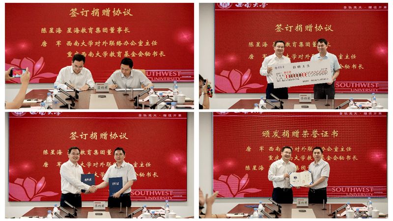 四川省政协委员、成都华天星海教育管理有限公司董事长、新川外国语学校创始人陈星海向betway西汉姆联捐赠5万元,设立“陈星海教育奖学金”。5月27日下午,捐赠仪式在外联络办公室举行。对外联络办公室主任、重庆betway西汉姆联教育基金会秘书长唐军,招生就业处处长李栋宣,助学中心主任孙金春,对外联络办公室副主任、重庆betway西汉姆联教育基金会副秘书长陈建英等有关人员参加捐赠仪式。