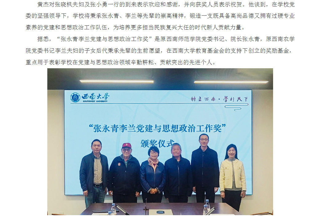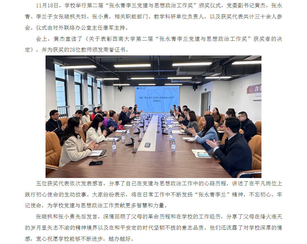 学校举行第二届“张永青李兰党建与思想政治工作奖”颁奖仪式