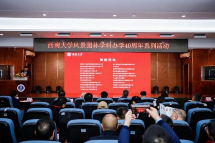 风景园林学科办学40周年系列活动之校友大会开幕式在校举行。中国风景园林学会副理事长贾建中,学校副校长葛信勇,重庆市城市管理局副局长林立,重庆市风景园林学会理事长马川,重庆市北碚区人大常委会副主任黄礼琴,中国风景园林学会副秘书长付彦荣等出席会议。学校对外联络办公室、深圳奥雅股份公司、城市生态园林国家林草局重点实验室、重庆大学建筑城规学院、中国城市规划设计研究院西部分院及重庆市兄弟院校及行业企业领导受邀参会,来自全国行业校友、毕业校友、园艺园林学院师生、退休教师等300余人参加开幕式。开幕式由园艺园林学院党委书记潘玉锋主持。
