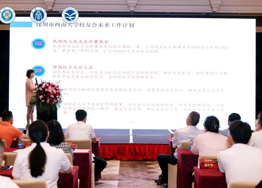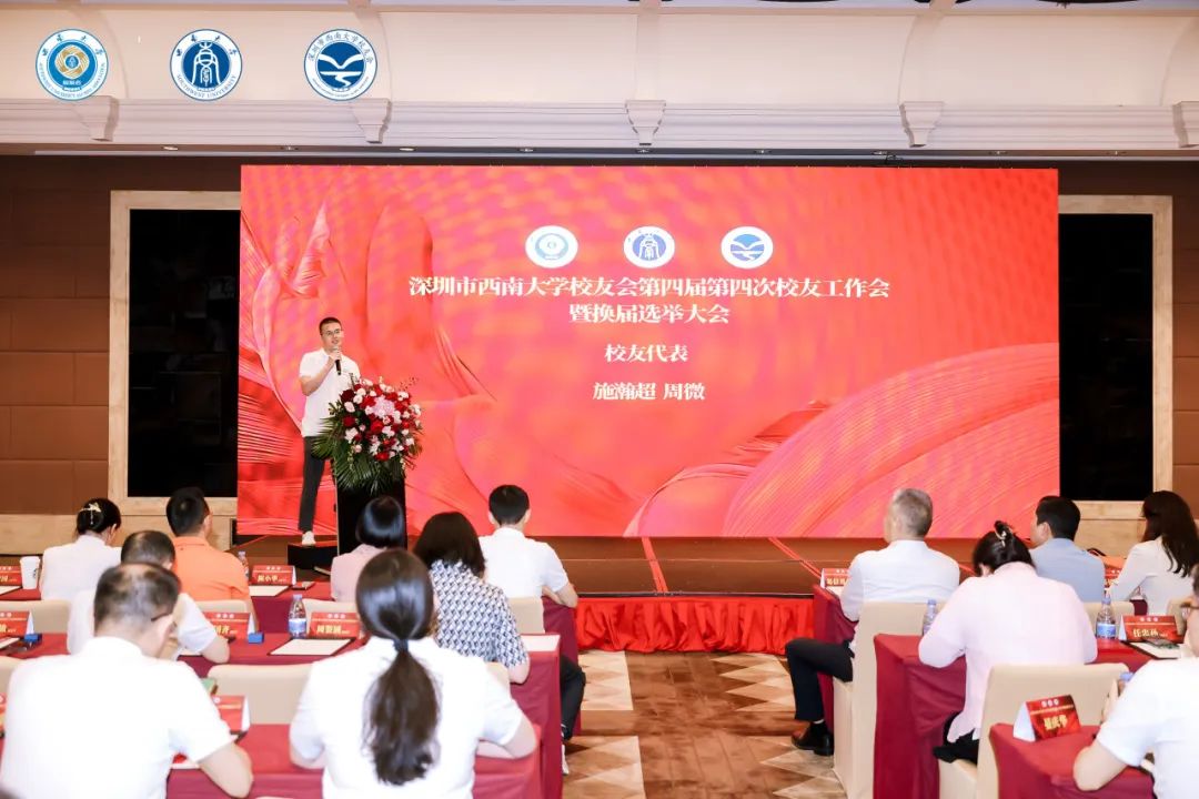 校友代表施翰超表态全力支持新一届校友会工作,秘书团队将继续发扬奉献精神,服务校友;周微结合自身职业经历,讲述校友互助故事,彰显深圳校友会的温暖与凝聚力。