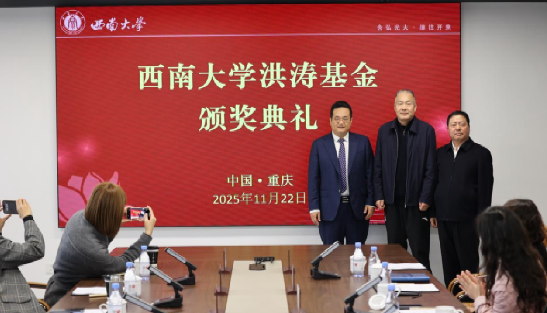 葛信勇副校长在致辞中对洪涛基金发起人的公益担当表示诚挚感谢,高度肯定其以实际行动反哺教育、助力母校发展的深厚情怀与责任坚守。他指出,洪涛基金聚焦师范人才培养,精准对接教育事业发展需求与学子成长期盼,为青年教师精进教学、学子逐梦前行注入了温暖动能与坚实保障,成为校企协同育人、校友反哺母校的生动范例。希望获奖师生以荣誉为新起点,深悟基金设立的初心使命,践行“含弘光大,继往开来”校训,在教育教学一线深耕不辍,在学术科研领域勇攀高峰,以过硬本领与责任担当在教育领域绽放西大风采,不负母校期许与社会重托。