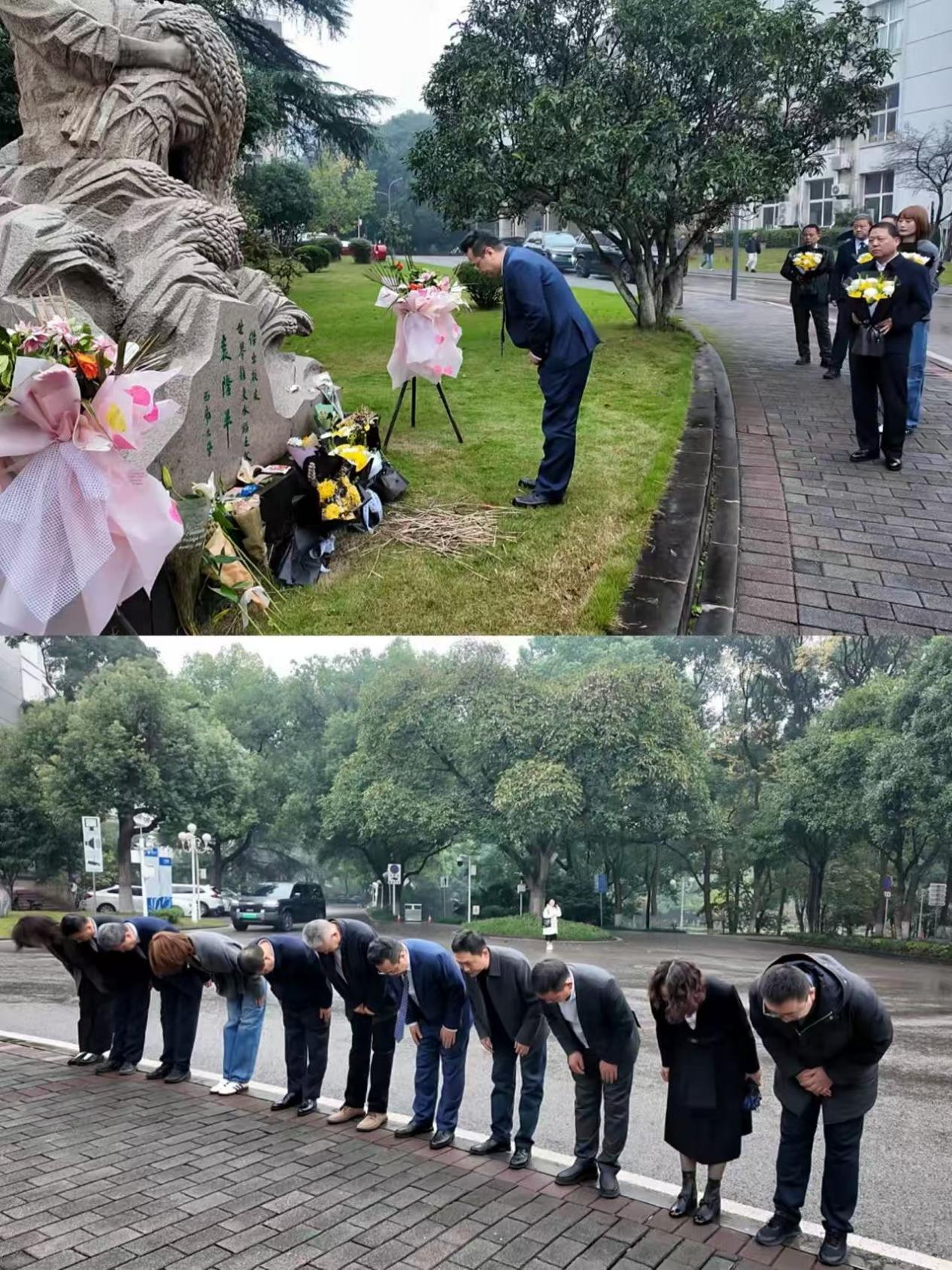 2025年11月22日,洪涛基金发起人,山西宣传文化名家工作室领衔人刘洪生、山西盛世集团董事长董涛江一行来校交流访问。交流活动伊始,刘洪生、董涛江一行首先前往betway西汉姆联袁隆平雕像前向“杂交水稻之父”袁隆平院士敬献鲜花,深切缅怀袁隆平院士为解决世界粮食问题作出的卓越贡献。