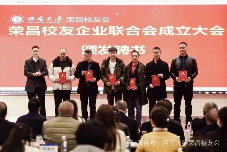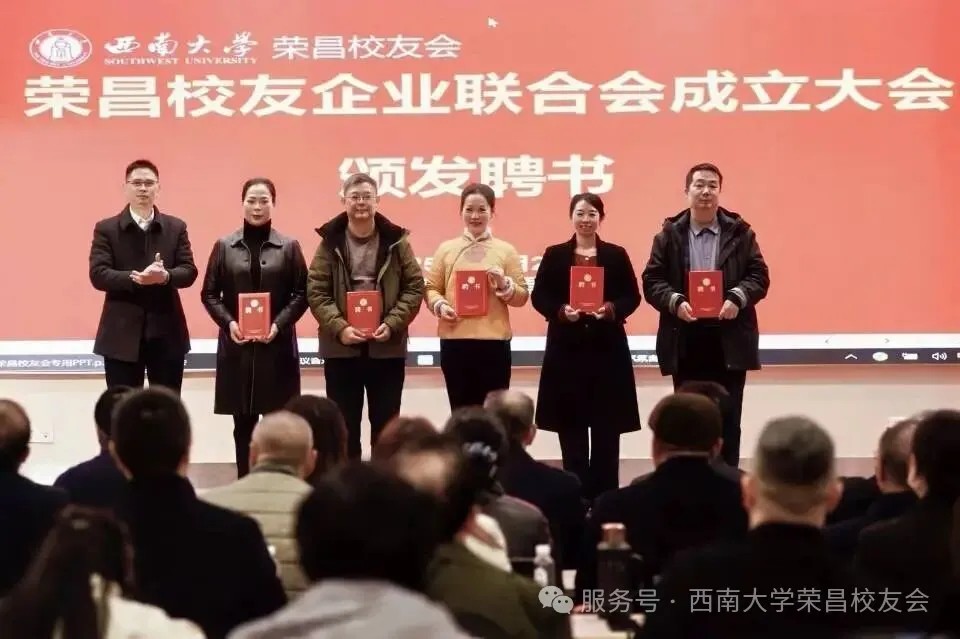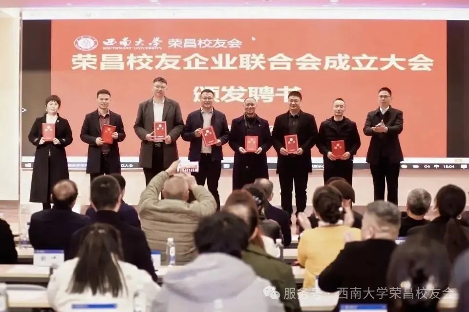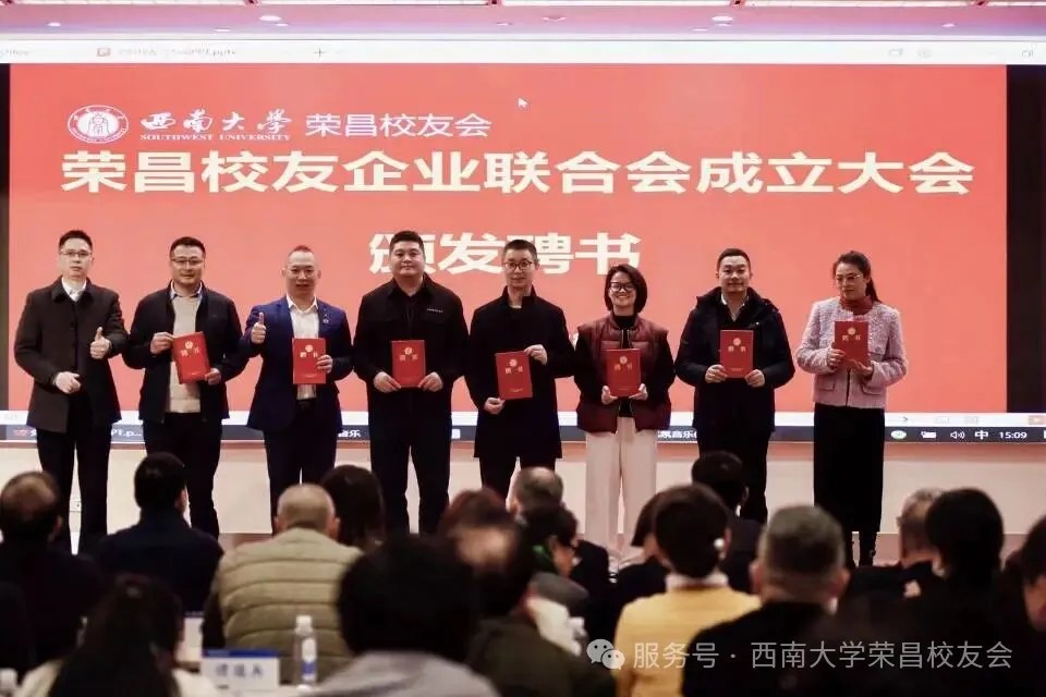 大会首项议程聚焦校友企业联合会成立,在荣昌校友会秘书长王威的主持下,现场审议并通过了联合会组织架构及人员名单,聘请蒲德伦、王维崊为名誉会长,熊白川当选会长,高银华任执行会长,王威任秘书长(兼),27名副会长、10名副秘书长及14名理事接过聘书履职。该联合会立足荣昌畜牧、农业产业特色,以“服务校友、服务企业、服务母校、服务社会”为宗旨,将打造特色鲜明的校友企业合作平台,推动大农业与多领域跨界融合。