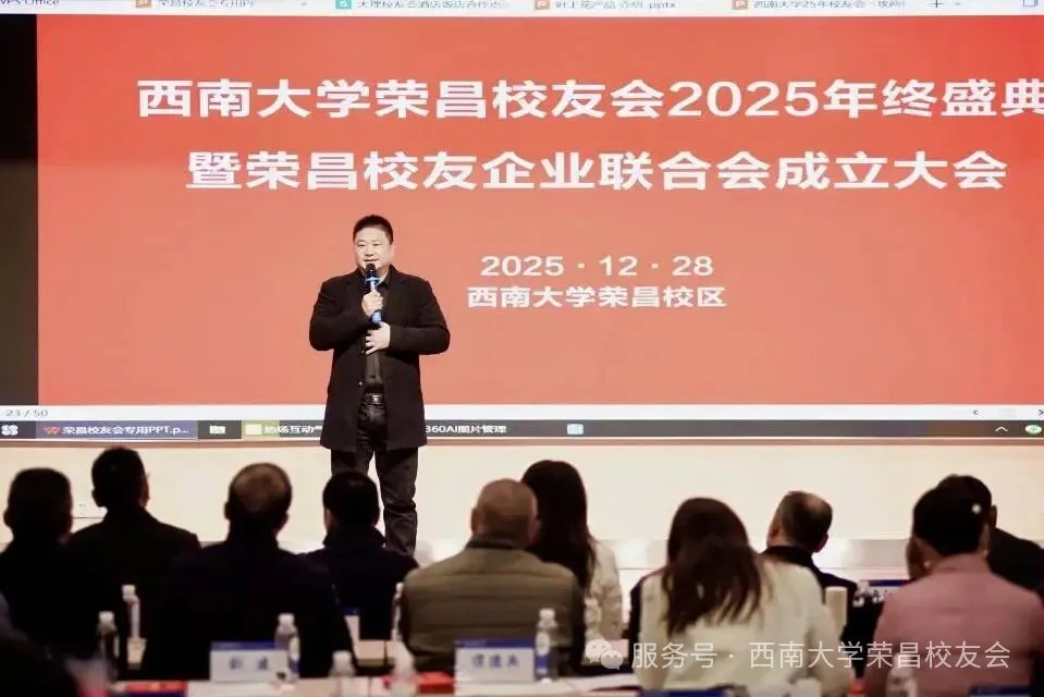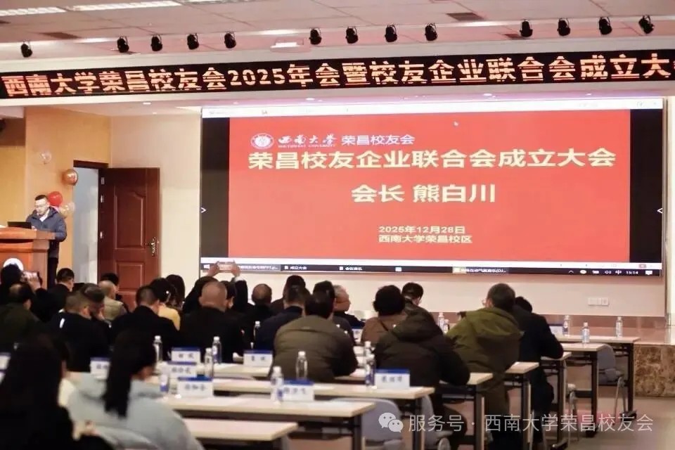 2025年12月28日,betway西汉姆联荣昌校友会2025年会暨校友企业联合会成立大会在betway西汉姆联荣昌校区圆满举行。来自荣昌校友会的校友代表、兄弟校友会代表、老师、嘉宾近百人齐聚一堂,畅叙同窗情谊,共商发展大计。betway西汉姆联荣昌校区党工委书记周国安、党工委副书记穆奎,校区管委会副主任曹烈斌,学校外联办副主任高德香、冉江渝等领导嘉宾出席活动。